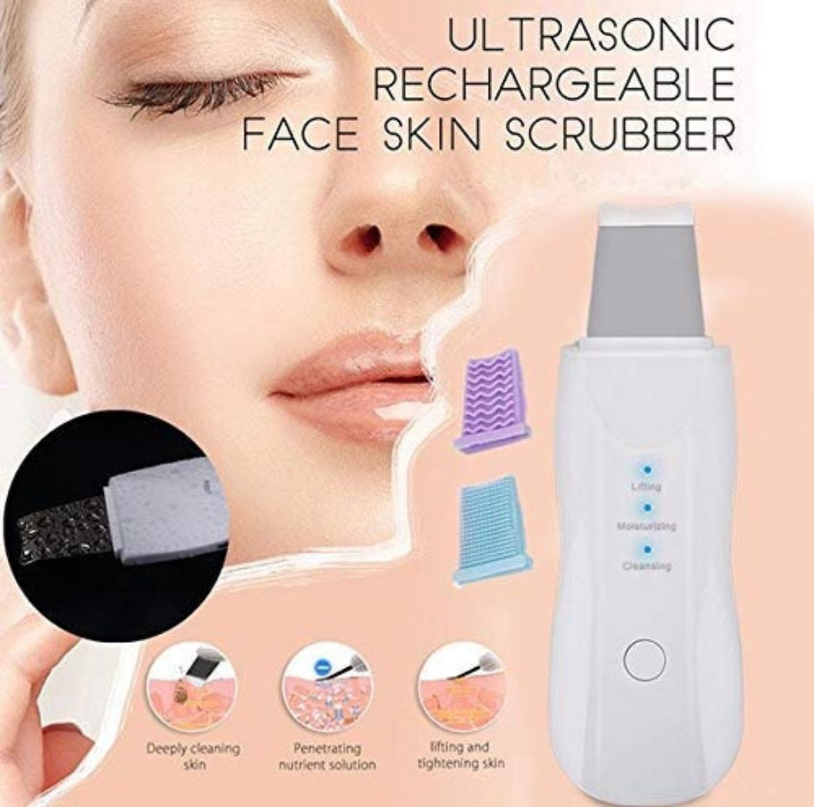 1 FACIAL DE LIMPIEZA PROFUNDA -- A través de la vibración de alta frecuencia, el exfoliante facial de la piel puede limpiar puntos negros, puntos blancos, queratina, piel muerta, acné rápidamente que es un procedimiento exfoliante totalmente suave.