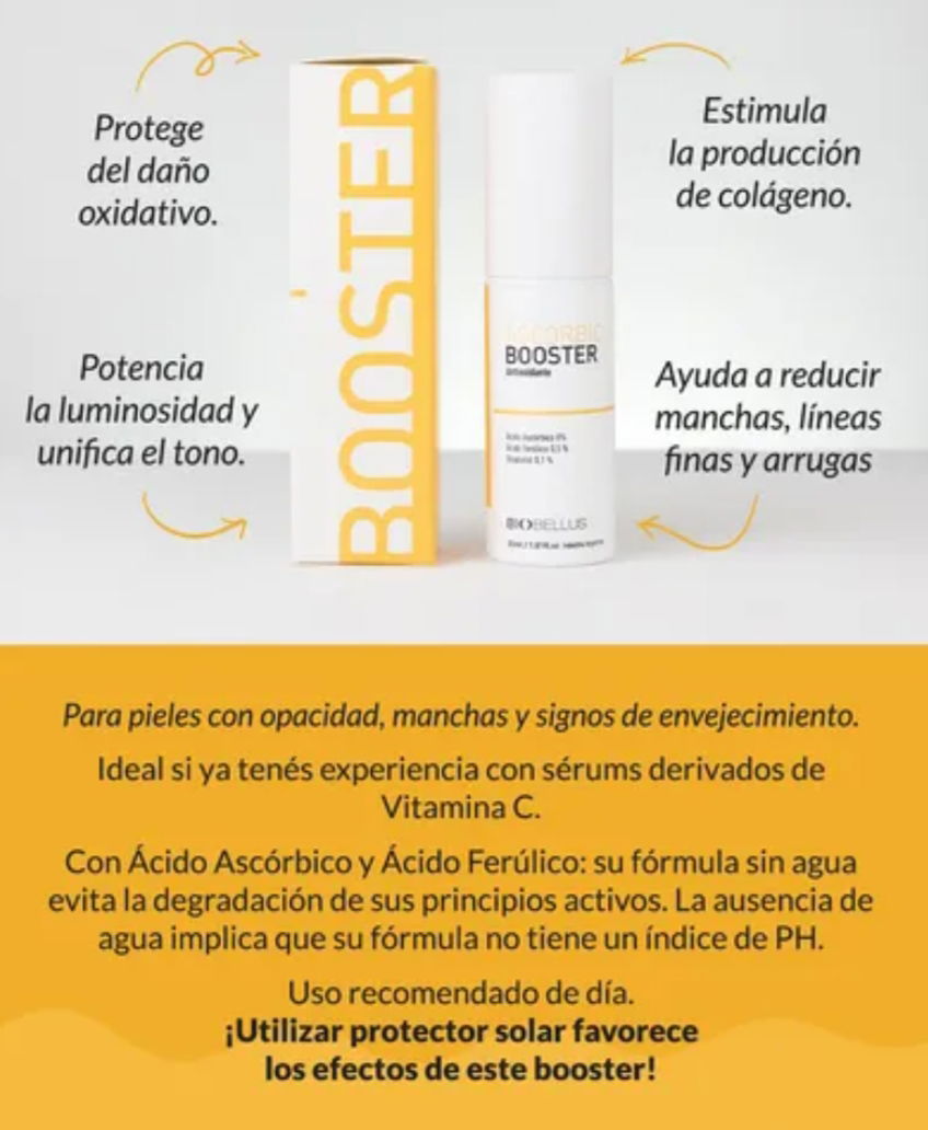 La potencia de la vitamina C pura en su versión más estable y efectiva. Formulado con Ácido Ascórbico 8% + Ácido Ferúlico 0,5% + Alfa Bisabolol 0,1%, combina acción antioxidante, iluminadora y regeneradora para transformar visiblemente la piel.