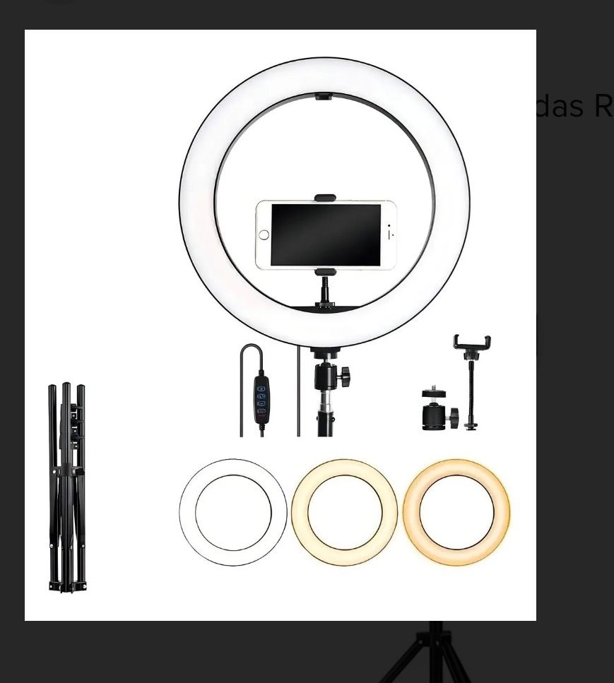 Aro de luz led 30cm de 12 pulgadas 3 tonos de luz y trae soporte de celular